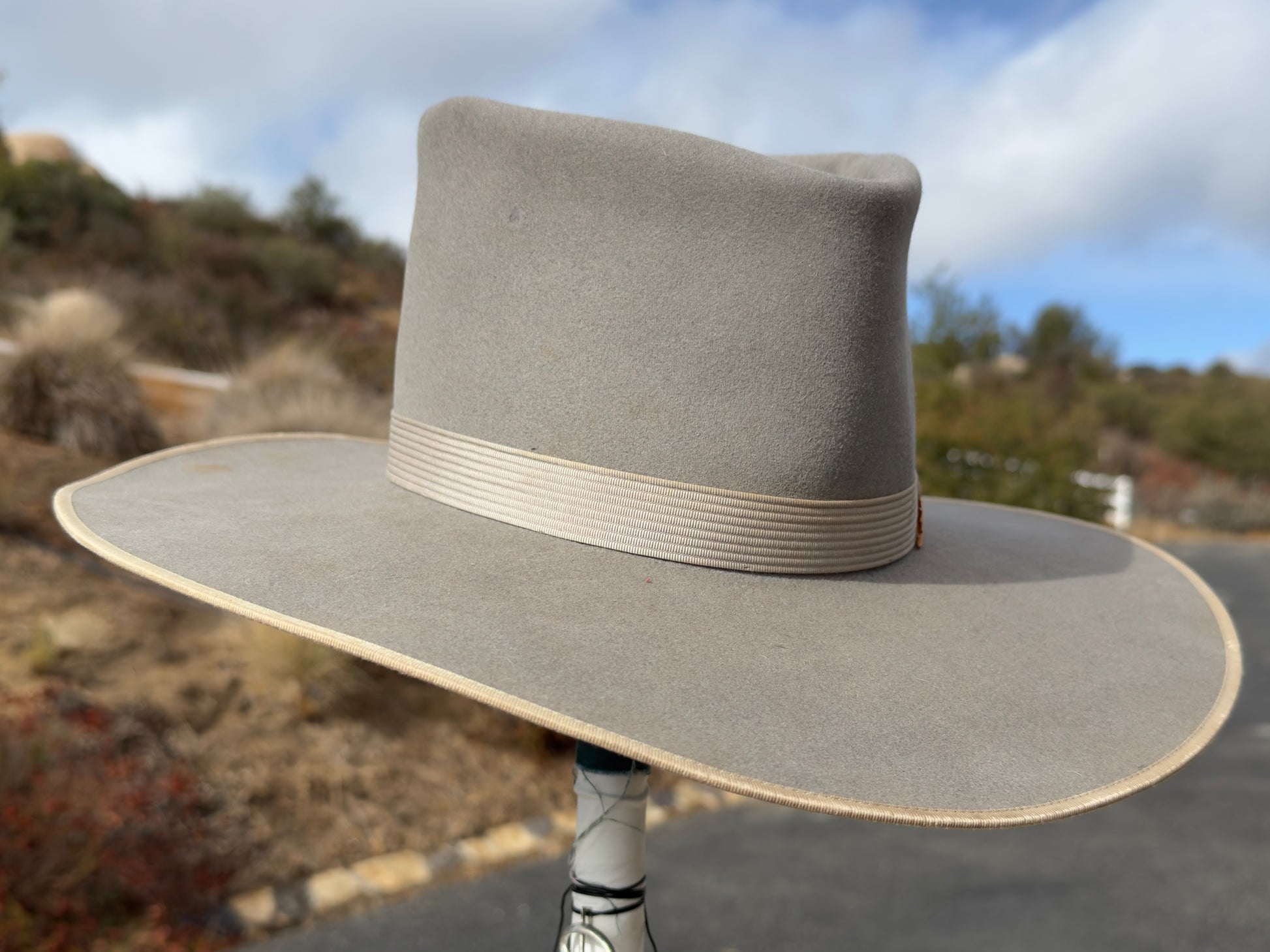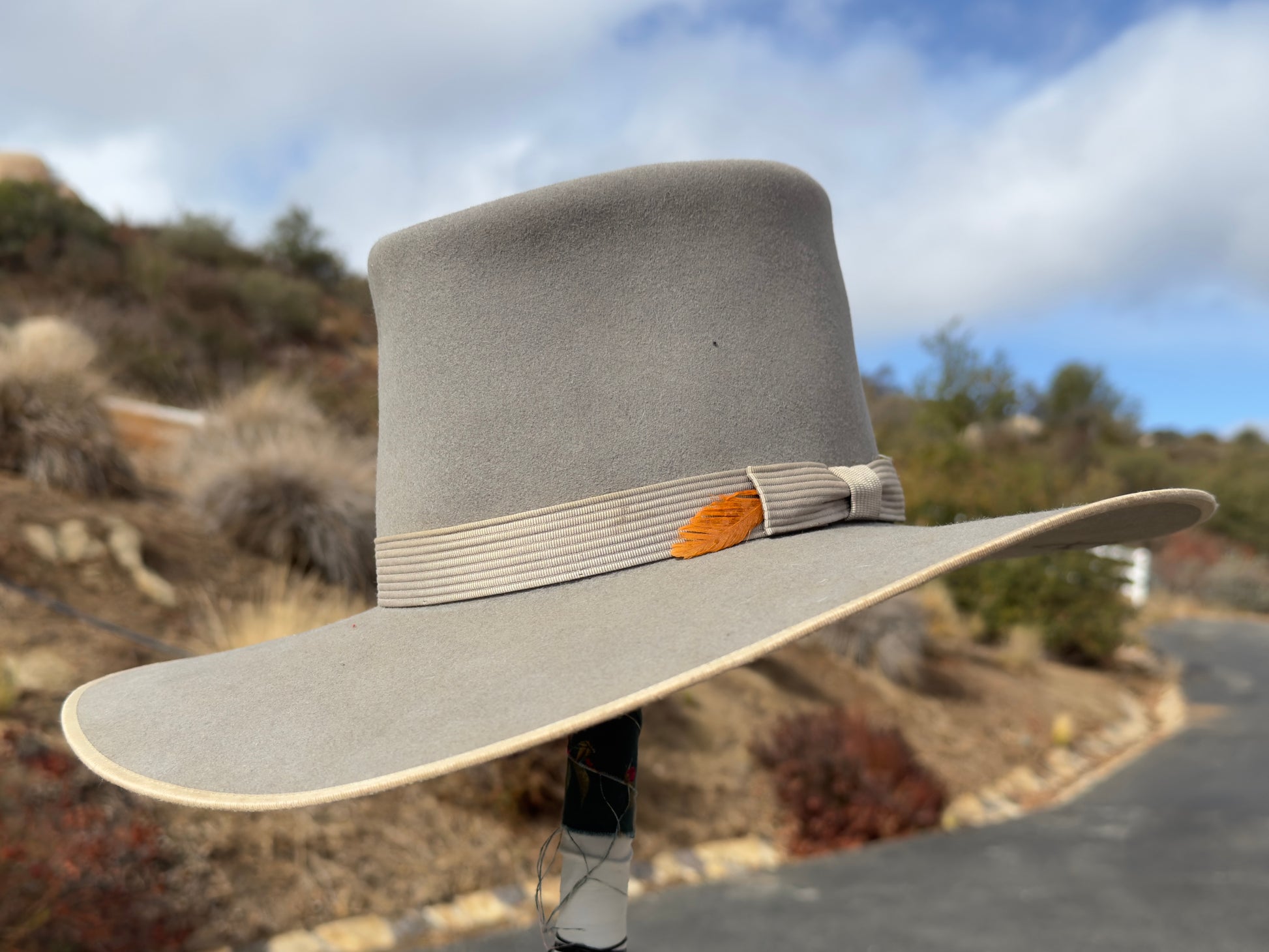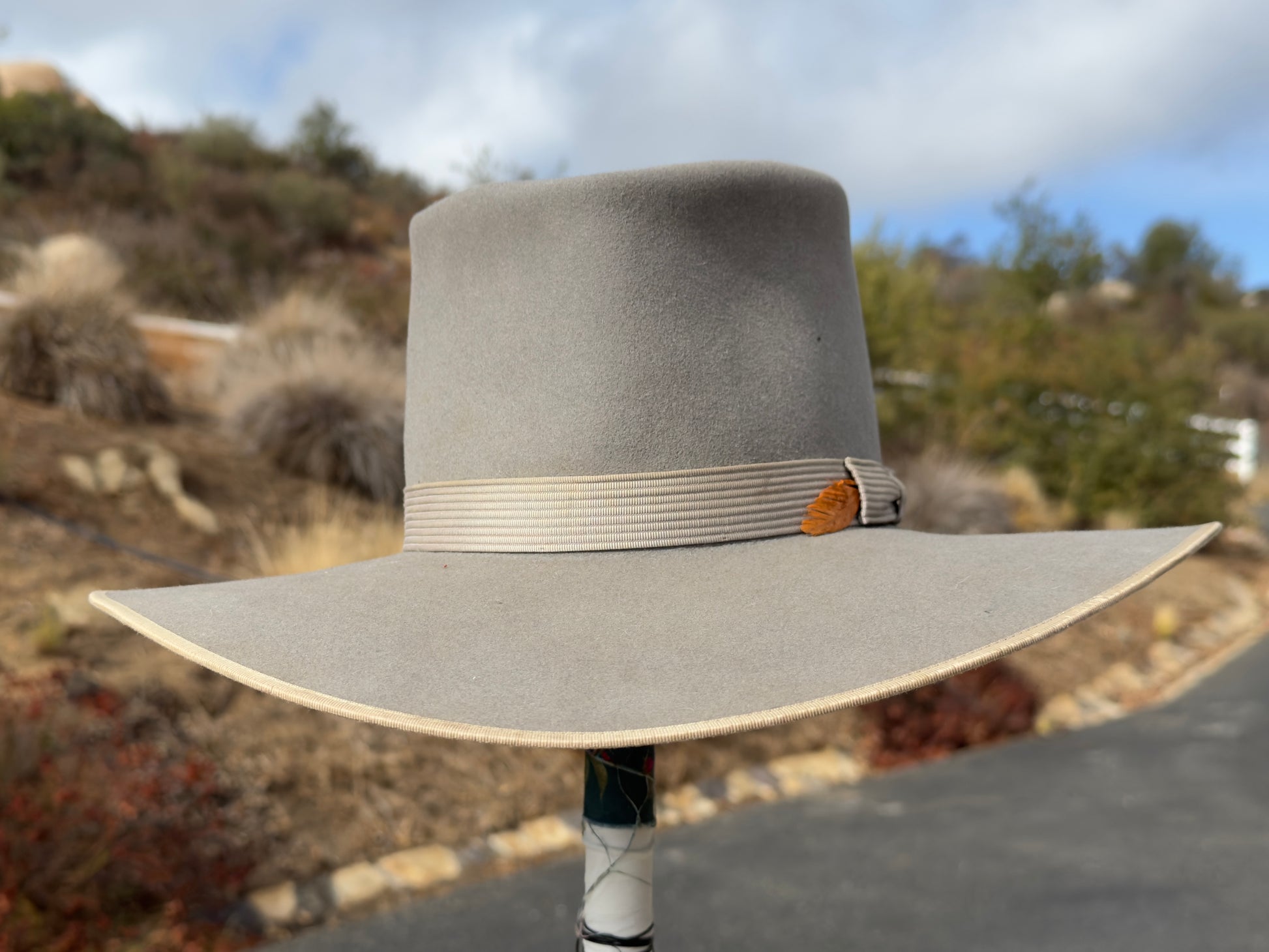 D69 Hats are handmade by artist Ken Goldstein - one hat at a time. The hats are made from either vintage fur, pulled from historic pelts, or repurposed from an existing hat. D69 Hats do not come with hatliners, hat bands, or any accoutrements common in retail Western style hats. D69 Hats are not fancy hats. These a raw with an unfinished quality because once you start wearing yours, it'll finish itself. The D69 logo is burned into the hat, as are details like size and approximated quality of fur. Source material is researched and original production dates estimated.