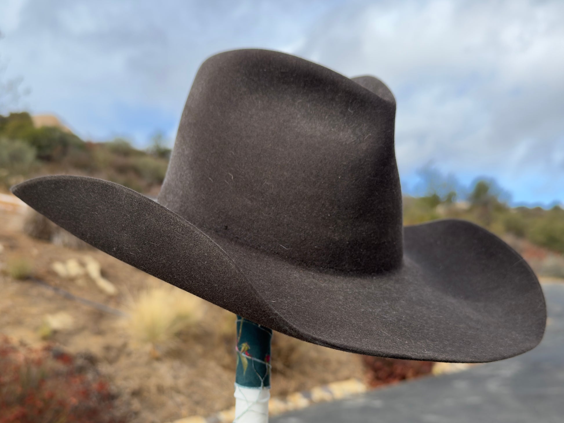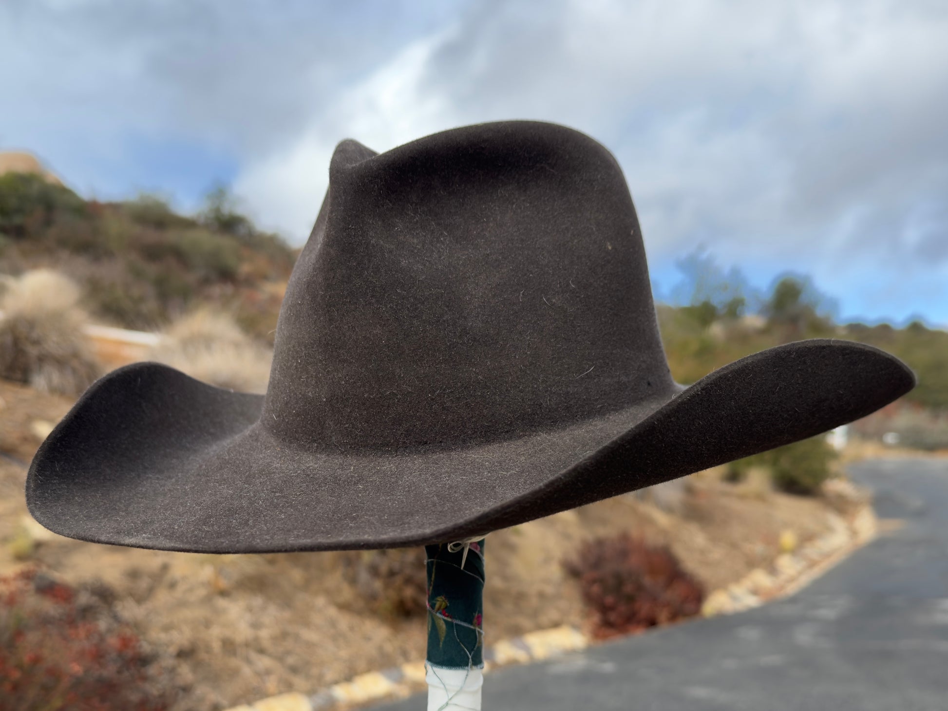 D69 Hats are handmade by artist Ken Goldstein - one hat at a time. The hats are made from either vintage fur, pulled from historic pelts, or repurposed from an existing hat. D69 Hats do not come with hatliners, hat bands, or any accoutrements common in retail Western style hats. D69 Hats are not fancy hats. These a raw with an unfinished quality because once you start wearing yours, it'll finish itself. The D69 logo is burned into the hat, as are details like size and approximated quality of fur. Source material is researched and original production dates estimated.