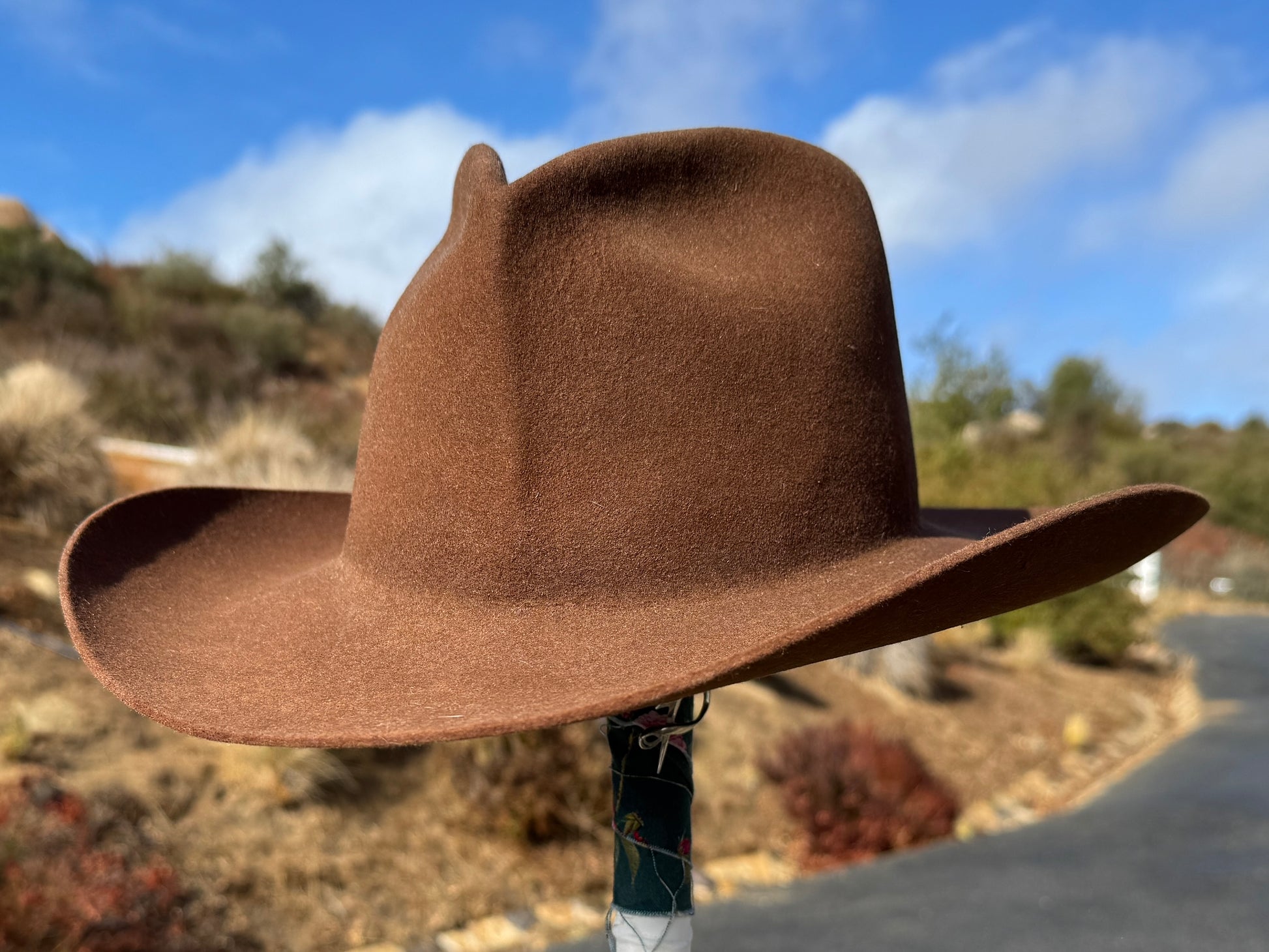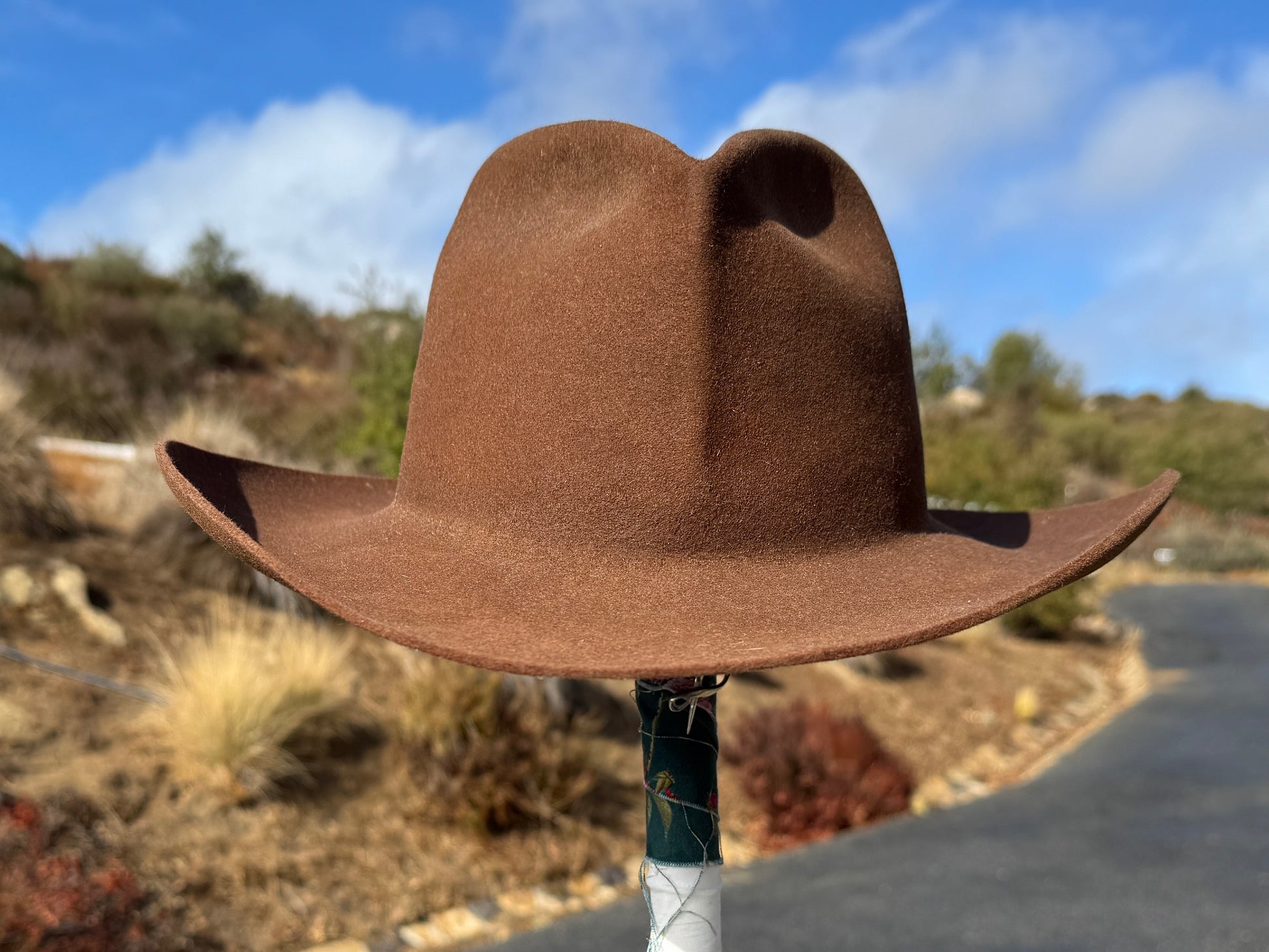D69 Hats are handmade by artist Ken Goldstein - one hat at a time. The hats are made from either vintage fur, pulled from historic pelts, or repurposed from an existing hat. D69 Hats do not come with hatliners, hat bands, or any accoutrements common in retail Western style hats. D69 Hats are not fancy hats. These a raw with an unfinished quality because once you start wearing yours, it'll finish itself. The D69 logo is burned into the hat, as are details like size and approximated quality of fur. Source material is researched and original production dates estimated.