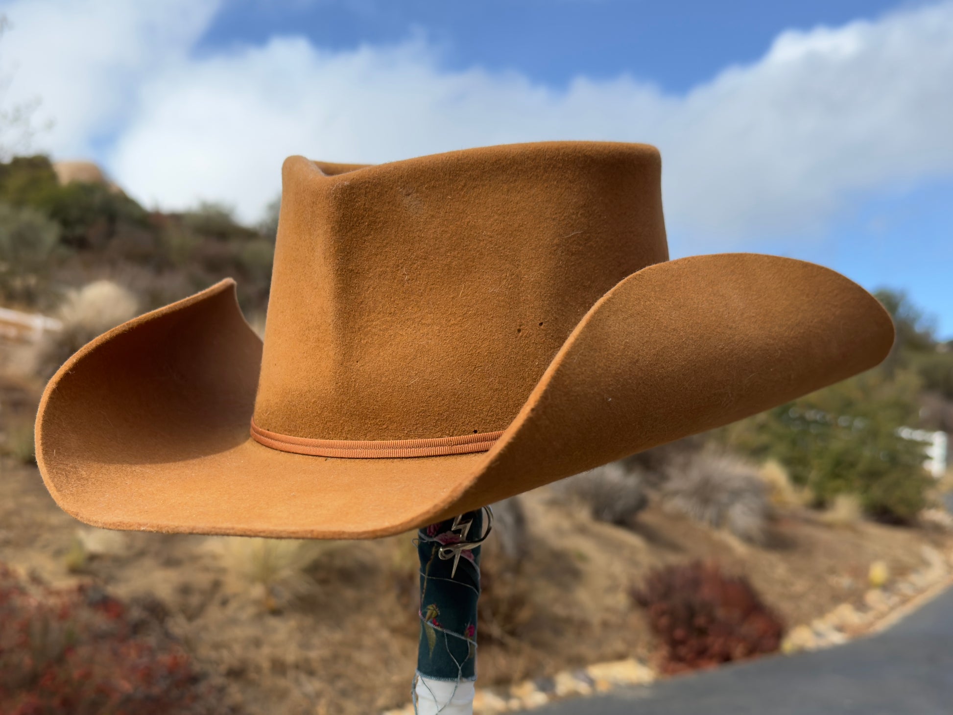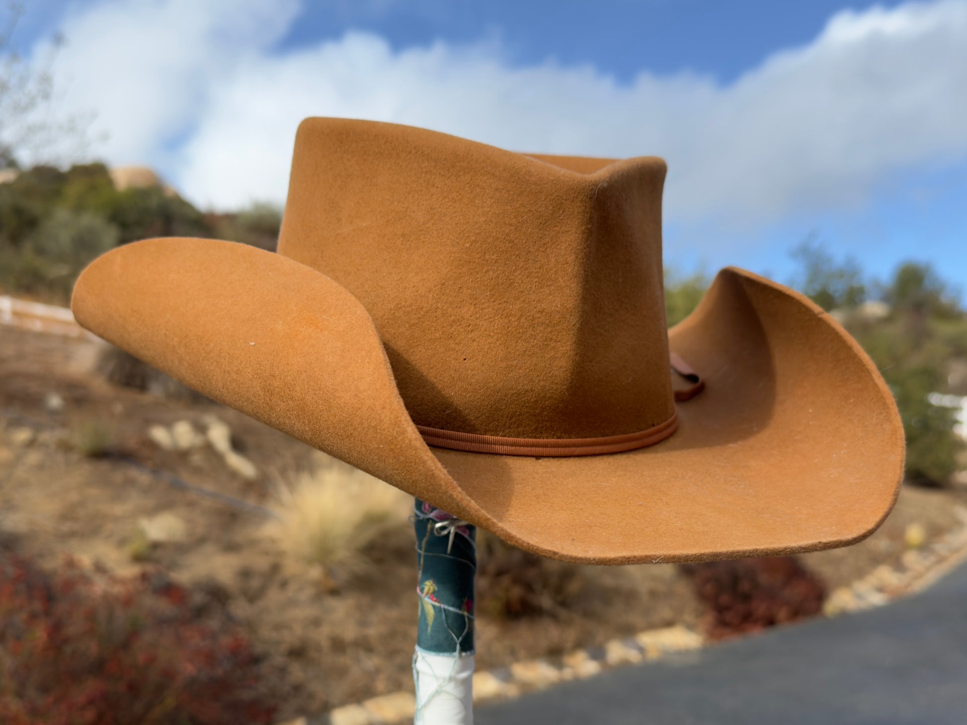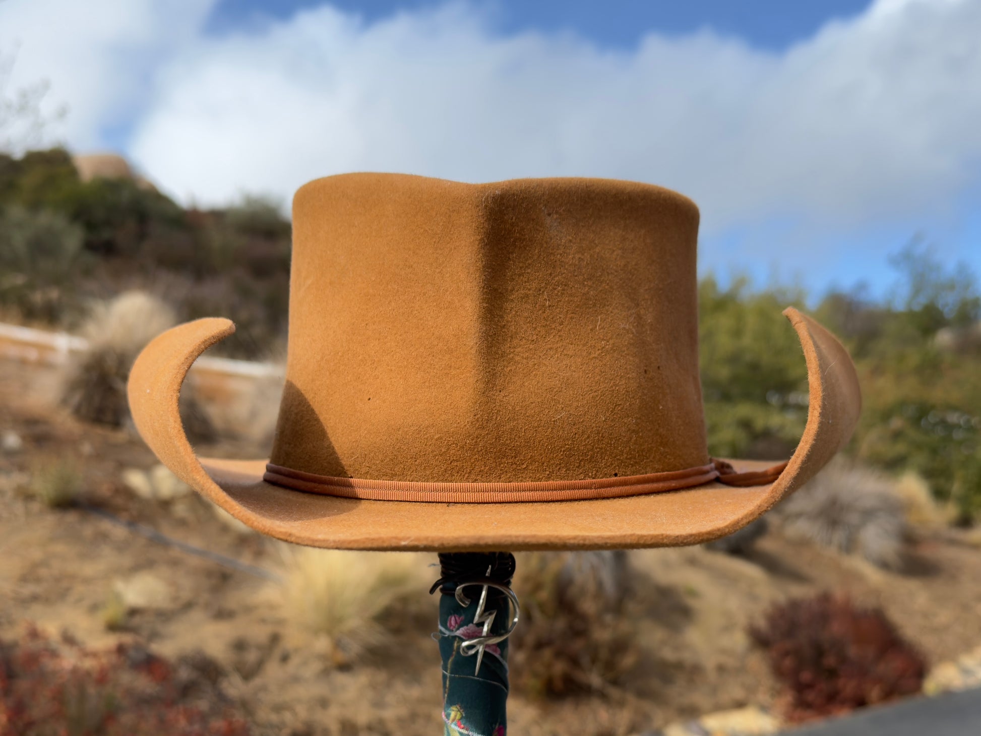 D69 Hats are handmade by artist Ken Goldstein - one hat at a time. The hats are made from either vintage fur, pulled from historic pelts, or repurposed from an existing hat. D69 Hats do not come with hatliners, hat bands, or any accoutrements common in retail Western style hats. D69 Hats are not fancy hats. These a raw with an unfinished quality because once you start wearing yours, it'll finish itself. The D69 logo is burned into the hat, as are details like size and approximated quality of fur. Source material is researched and original production dates estimated.