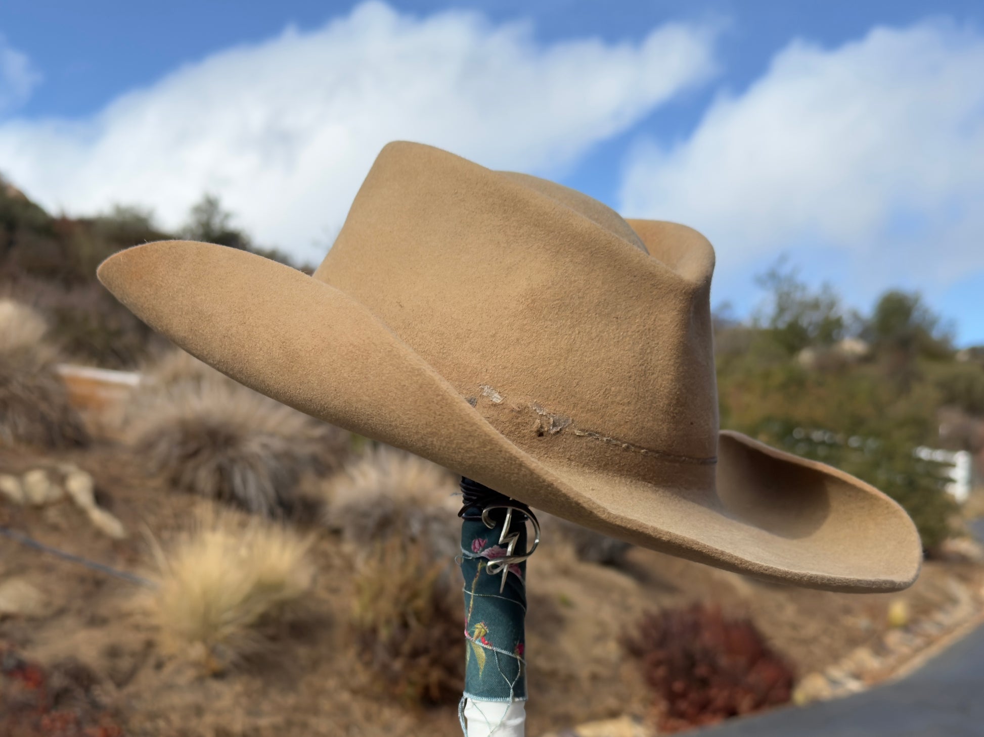 D69 Hats are handmade by artist Ken Goldstein - one hat at a time. The hats are made from either vintage fur, pulled from historic pelts, or repurposed from an existing hat. D69 Hats do not come with hatliners, hat bands, or any accoutrements common in retail Western style hats. D69 Hats are not fancy hats. These a raw with an unfinished quality because once you start wearing yours, it'll finish itself. The D69 logo is burned into the hat, as are details like size and approximated quality of fur. Source material is researched and original production dates estimated.