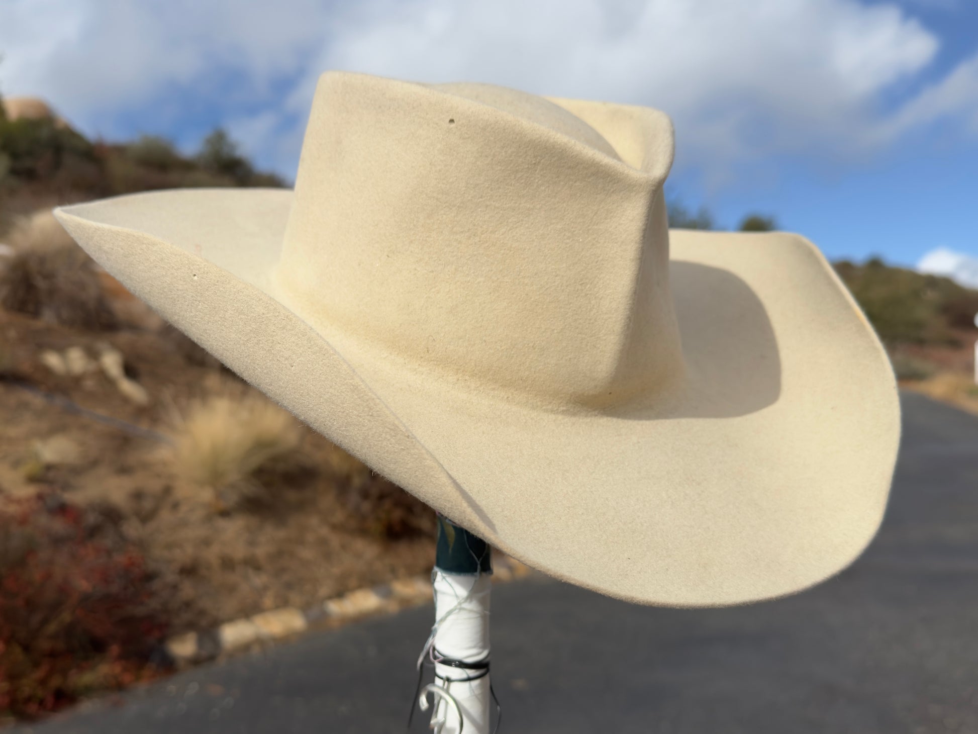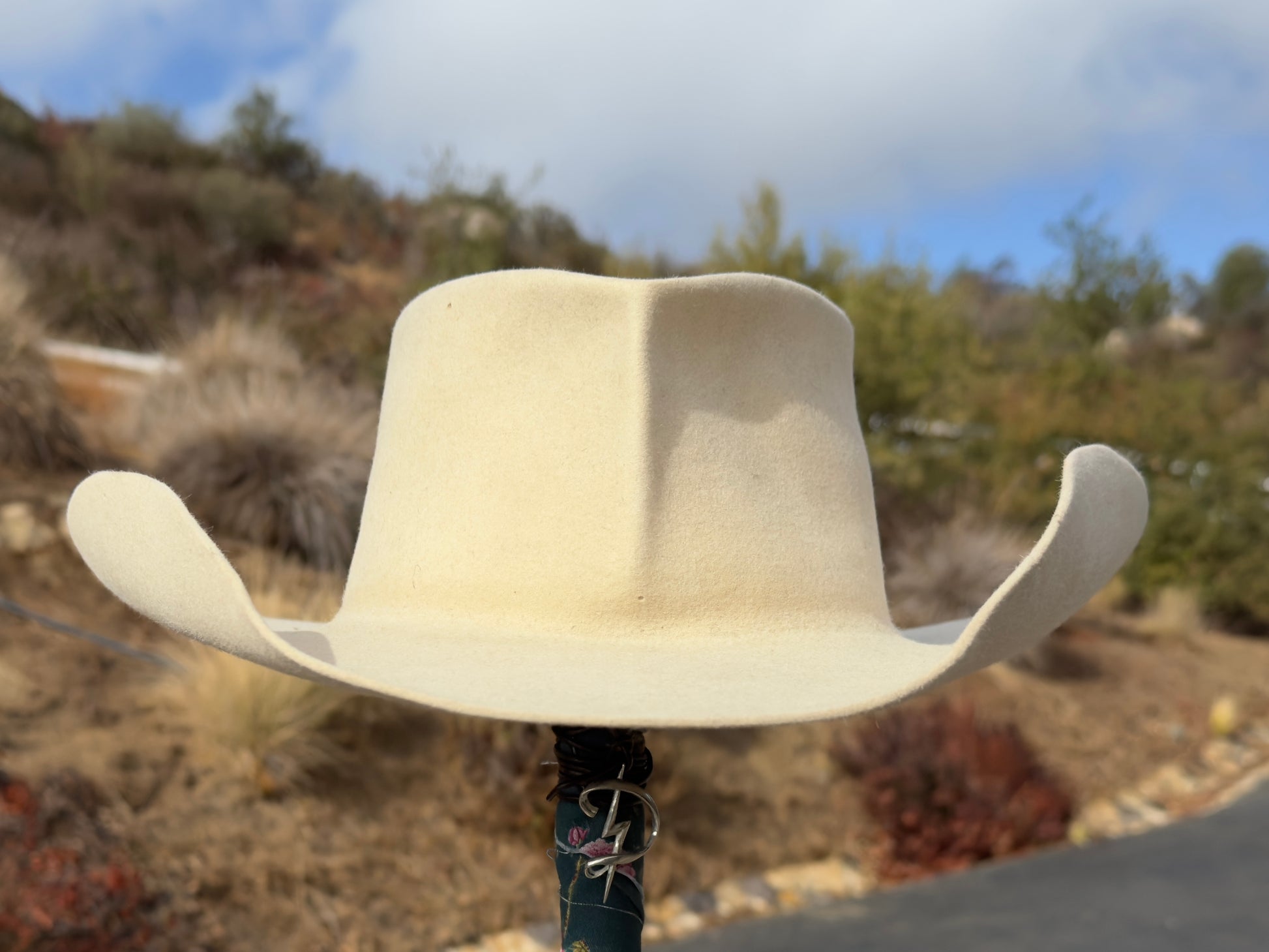 D69 Hats are handmade by artist Ken Goldstein - one hat at a time. The hats are made from either vintage fur, pulled from historic pelts, or repurposed from an existing hat. D69 Hats do not come with hatliners, hat bands, or any accoutrements common in retail Western style hats. D69 Hats are not fancy hats. These a raw with an unfinished quality because once you start wearing yours, it'll finish itself. The D69 logo is burned into the hat, as are details like size and approximated quality of fur. Source material is researched and original production dates estimated.