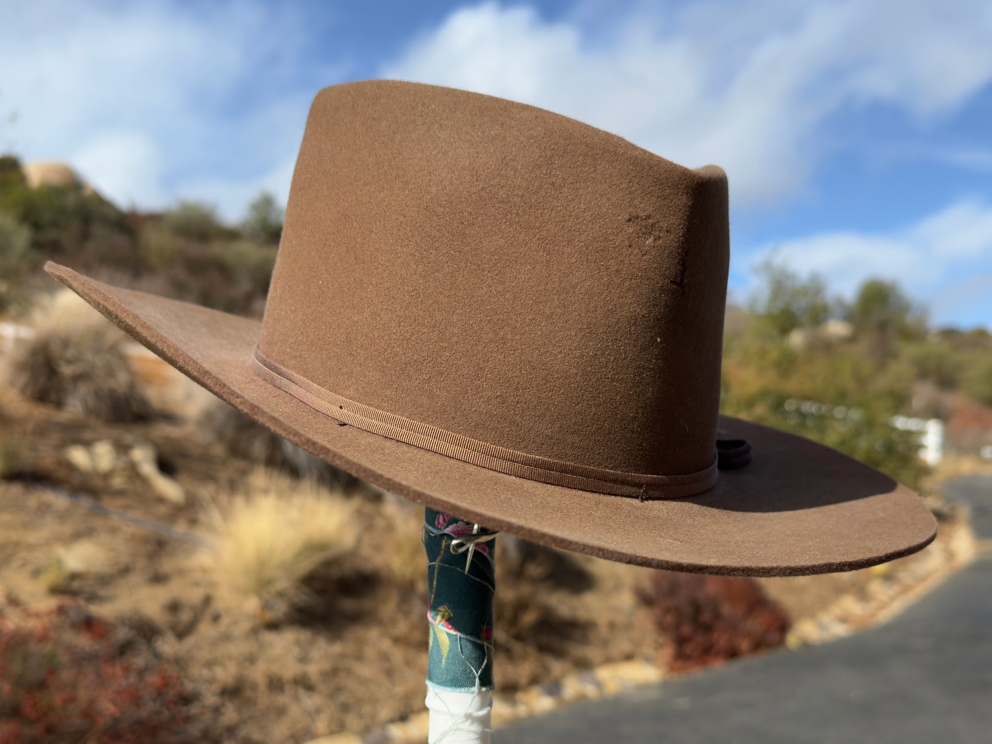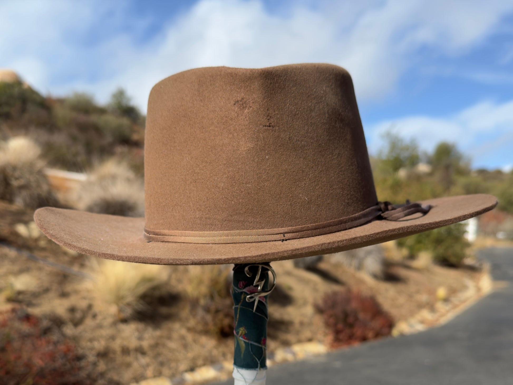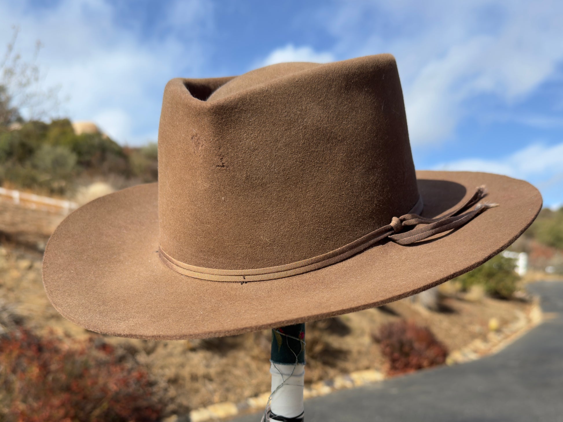 D69 Hats are handmade by artist Ken Goldstein - one hat at a time. The hats are made from either vintage fur, pulled from historic pelts, or repurposed from an existing hat. D69 Hats do not come with hatliners, hat bands, or any accoutrements common in retail Western style hats. D69 Hats are not fancy hats. These a raw with an unfinished quality because once you start wearing yours, it'll finish itself. The D69 logo is burned into the hat, as are details like size and approximated quality of fur. Source material is researched and original production dates estimated.