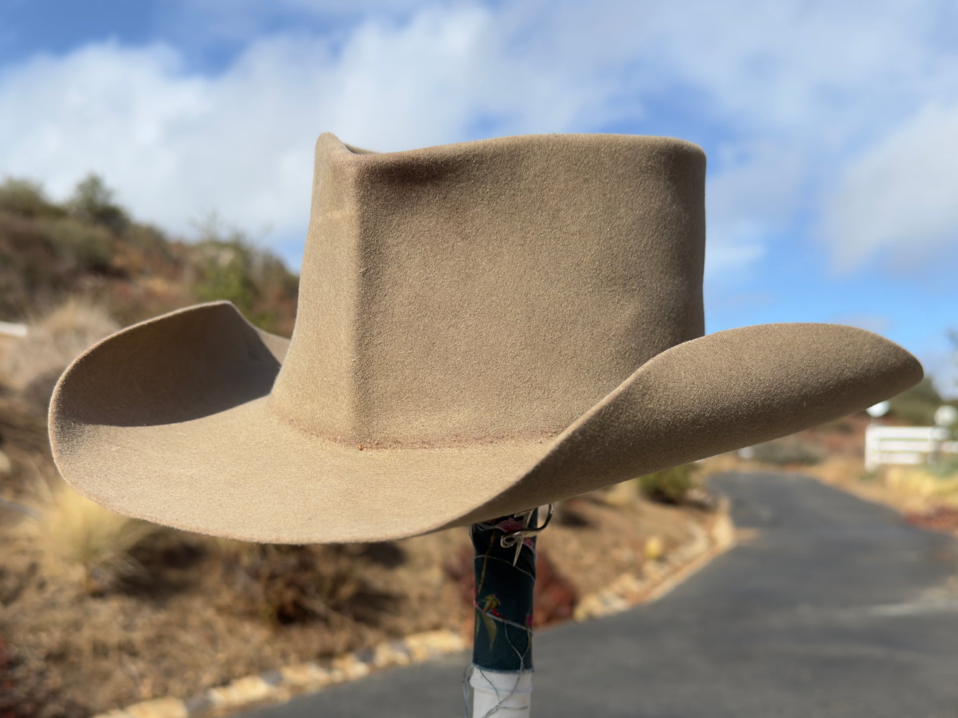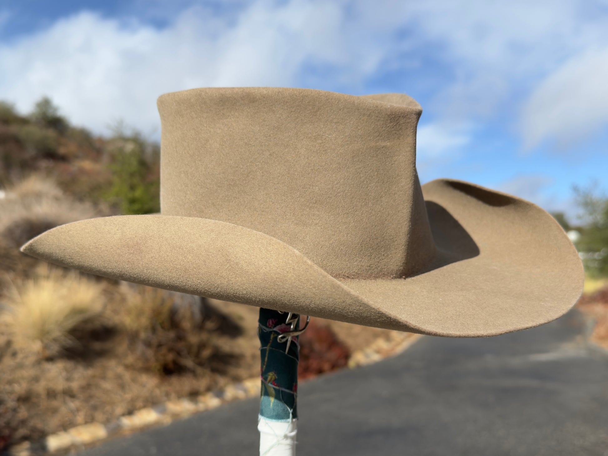 D69 Hats are handmade by artist Ken Goldstein - one hat at a time. The hats are made from either vintage fur, pulled from historic pelts, or repurposed from an existing hat. D69 Hats do not come with hatliners, hat bands, or any accoutrements common in retail Western style hats. D69 Hats are not fancy hats. These a raw with an unfinished quality because once you start wearing yours, it'll finish itself. The D69 logo is burned into the hat, as are details like size and approximated quality of fur. Source material is researched and original production dates estimated.