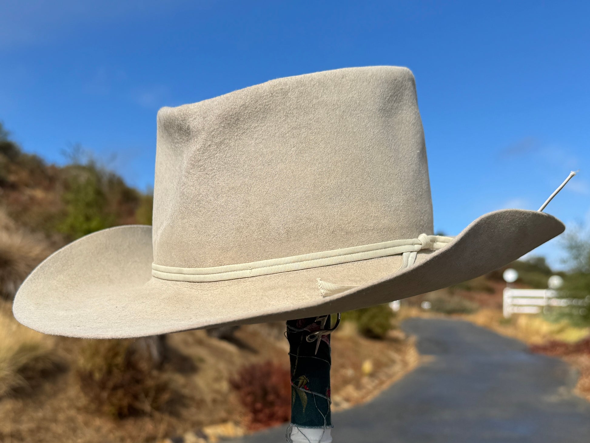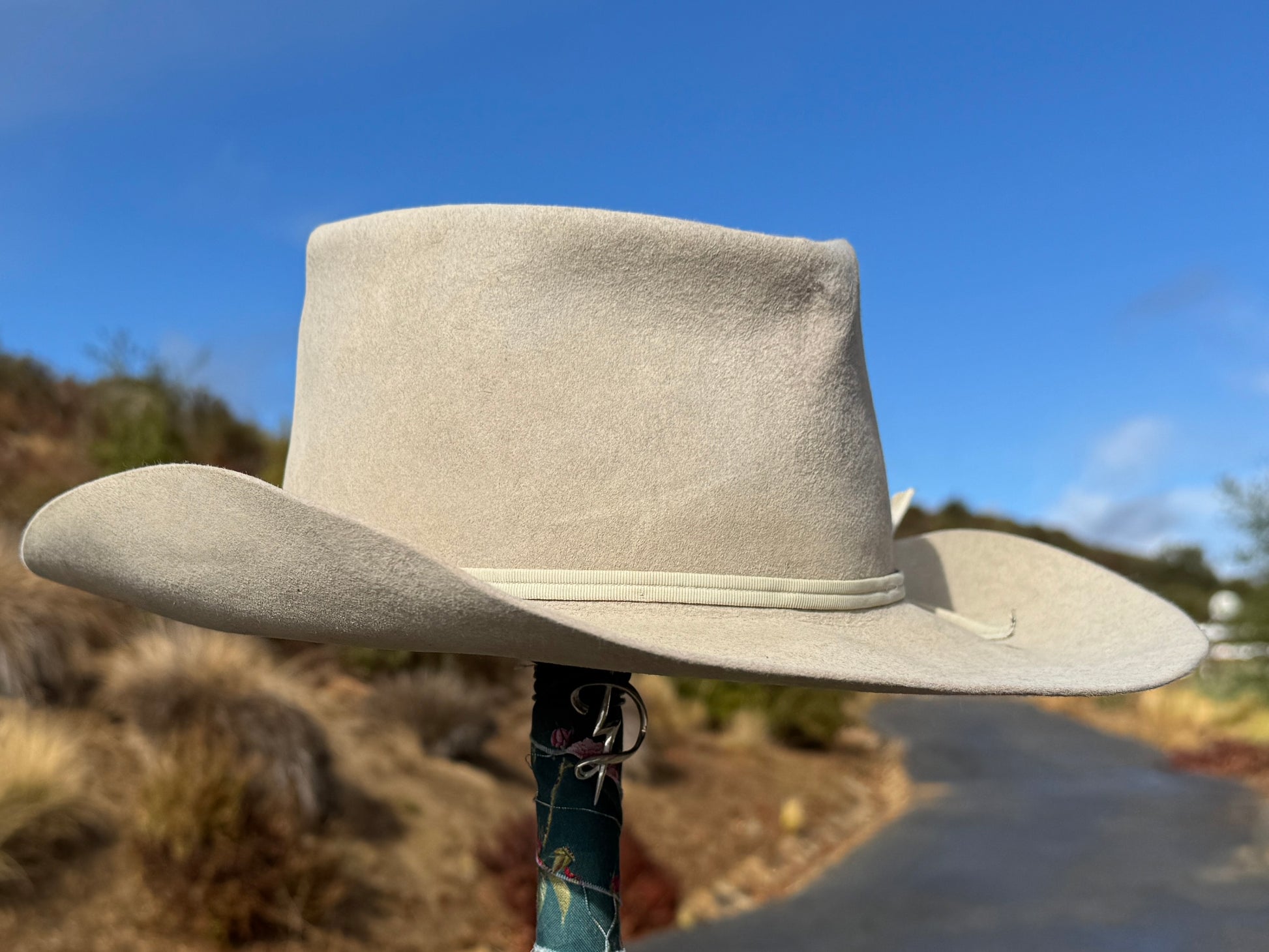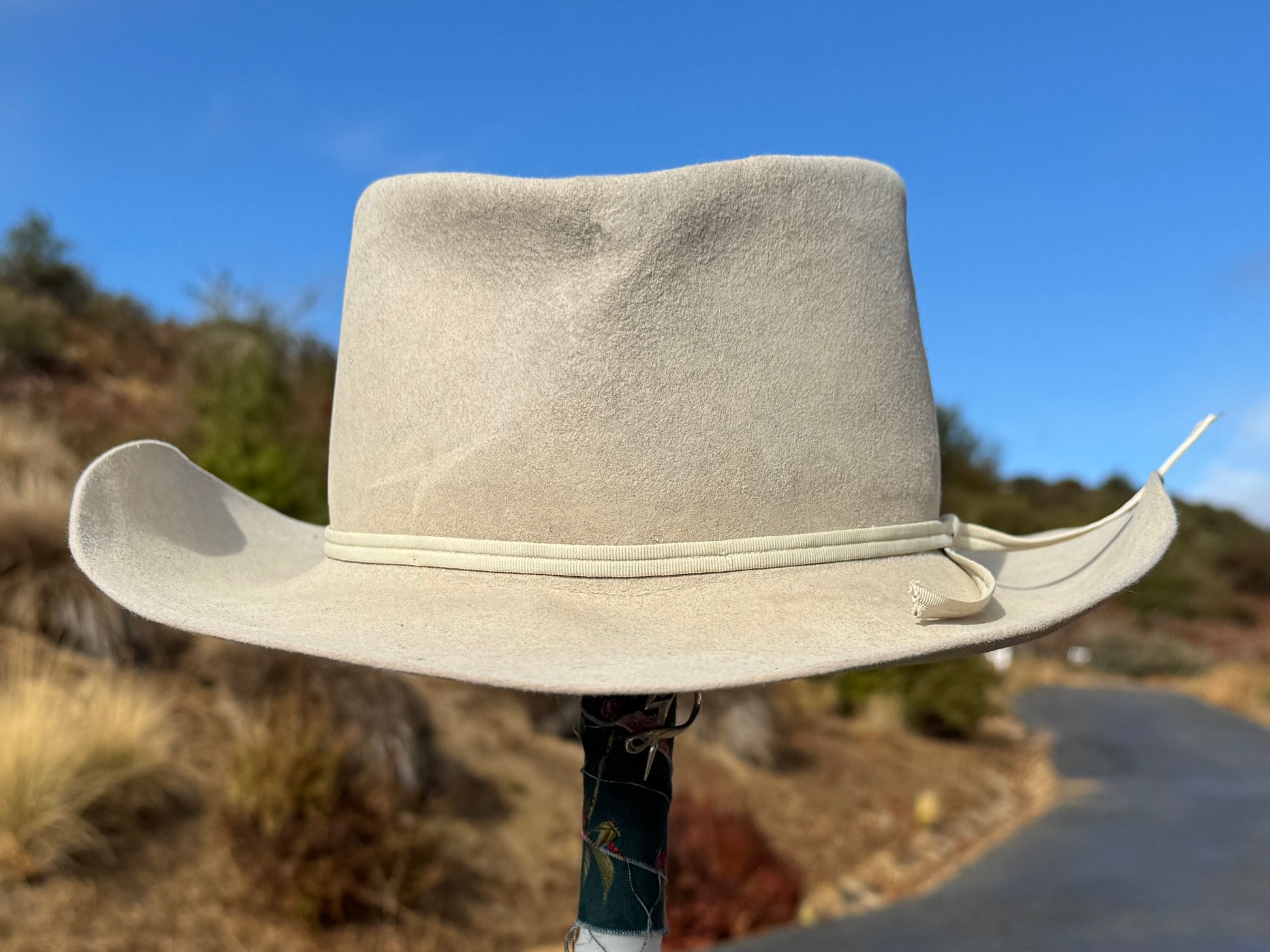 D69 Hats are handmade by artist Ken Goldstein - one hat at a time. The hats are made from either vintage fur, pulled from historic pelts, or repurposed from an existing hat. D69 Hats do not come with hatliners, hat bands, or any accoutrements common in retail Western style hats. D69 Hats are not fancy hats. These a raw with an unfinished quality because once you start wearing yours, it'll finish itself. The D69 logo is burned into the hat, as are details like size and approximated quality of fur. Source material is researched and original production dates estimated.