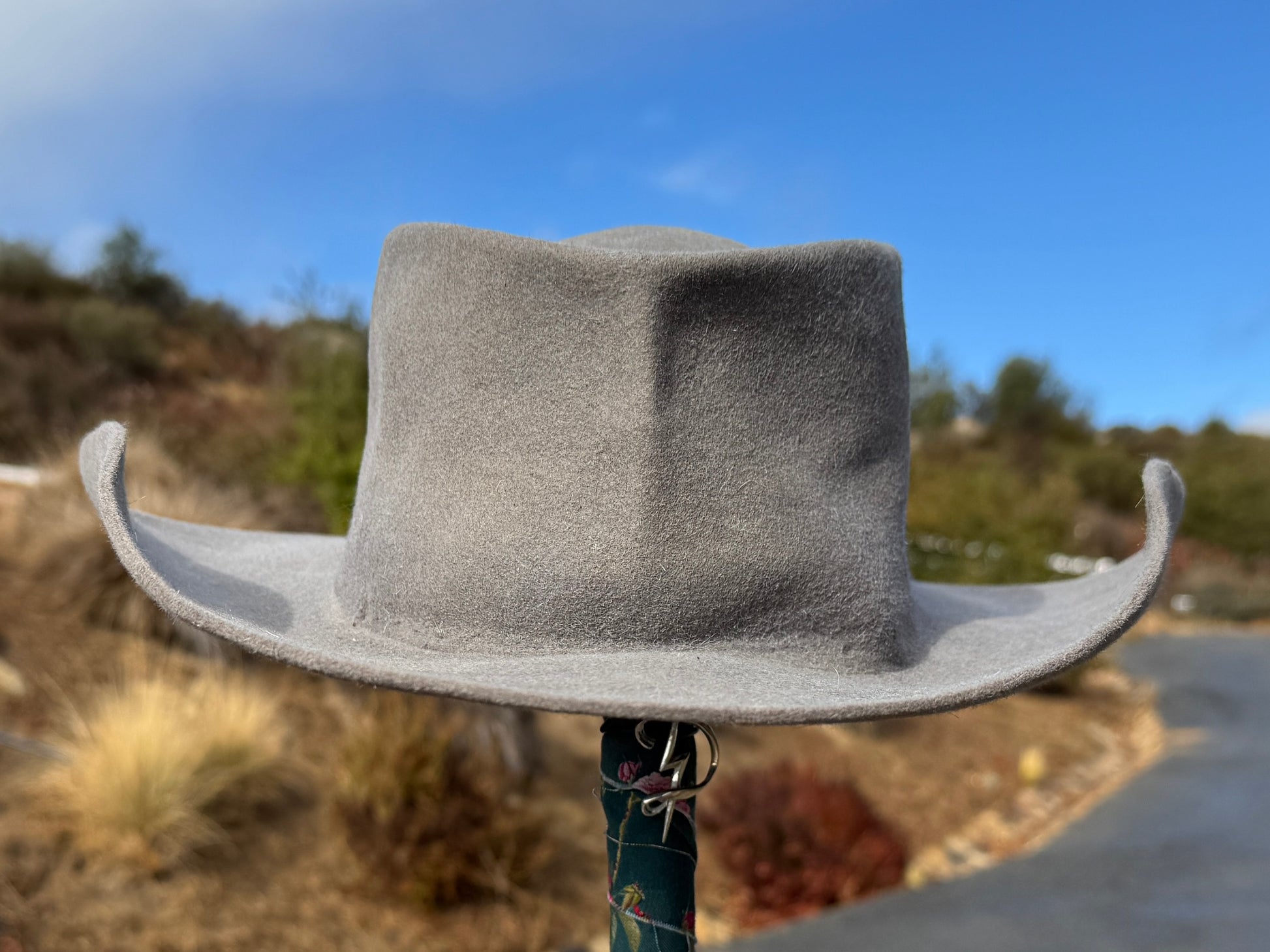D69 Hats are handmade by artist Ken Goldstein - one hat at a time. The hats are made from either vintage fur, pulled from historic pelts, or repurposed from an existing hat. D69 Hats do not come with hatliners, hat bands, or any accoutrements common in retail Western style hats. D69 Hats are not fancy hats. These a raw with an unfinished quality because once you start wearing yours, it'll finish itself. The D69 logo is burned into the hat, as are details like size and approximated quality of fur. Source material is researched and original production dates estimated.