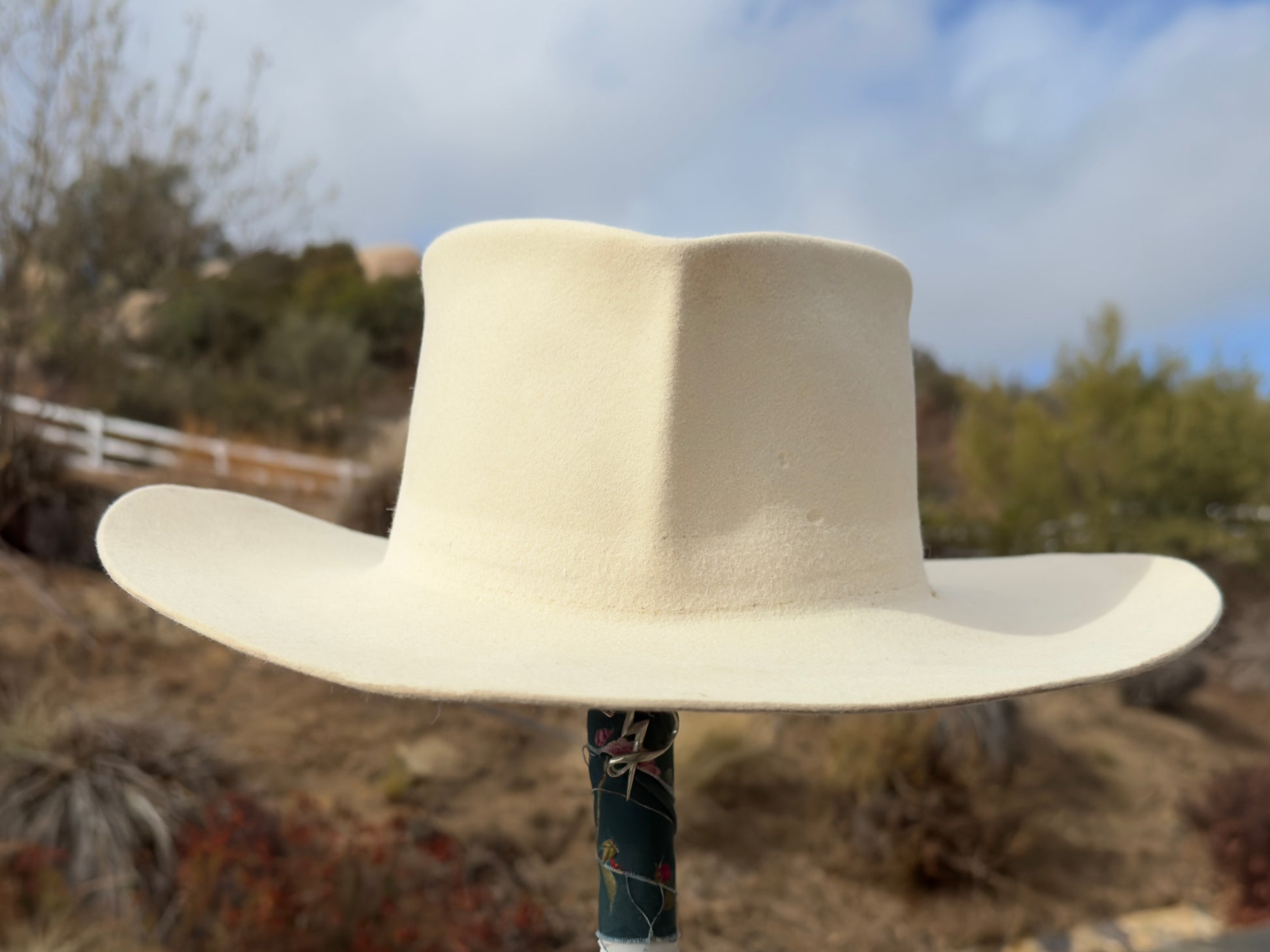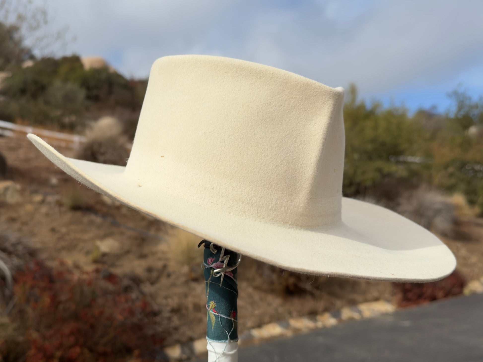 D69 Hats are handmade by artist Ken Goldstein - one hat at a time. The hats are made from either vintage fur, pulled from historic pelts, or repurposed from an existing hat. D69 Hats do not come with hatliners, hat bands, or any accoutrements common in retail Western style hats. D69 Hats are not fancy hats. These a raw with an unfinished quality because once you start wearing yours, it'll finish itself. The D69 logo is burned into the hat, as are details like size and approximated quality of fur. Source material is researched and original production dates estimated.
