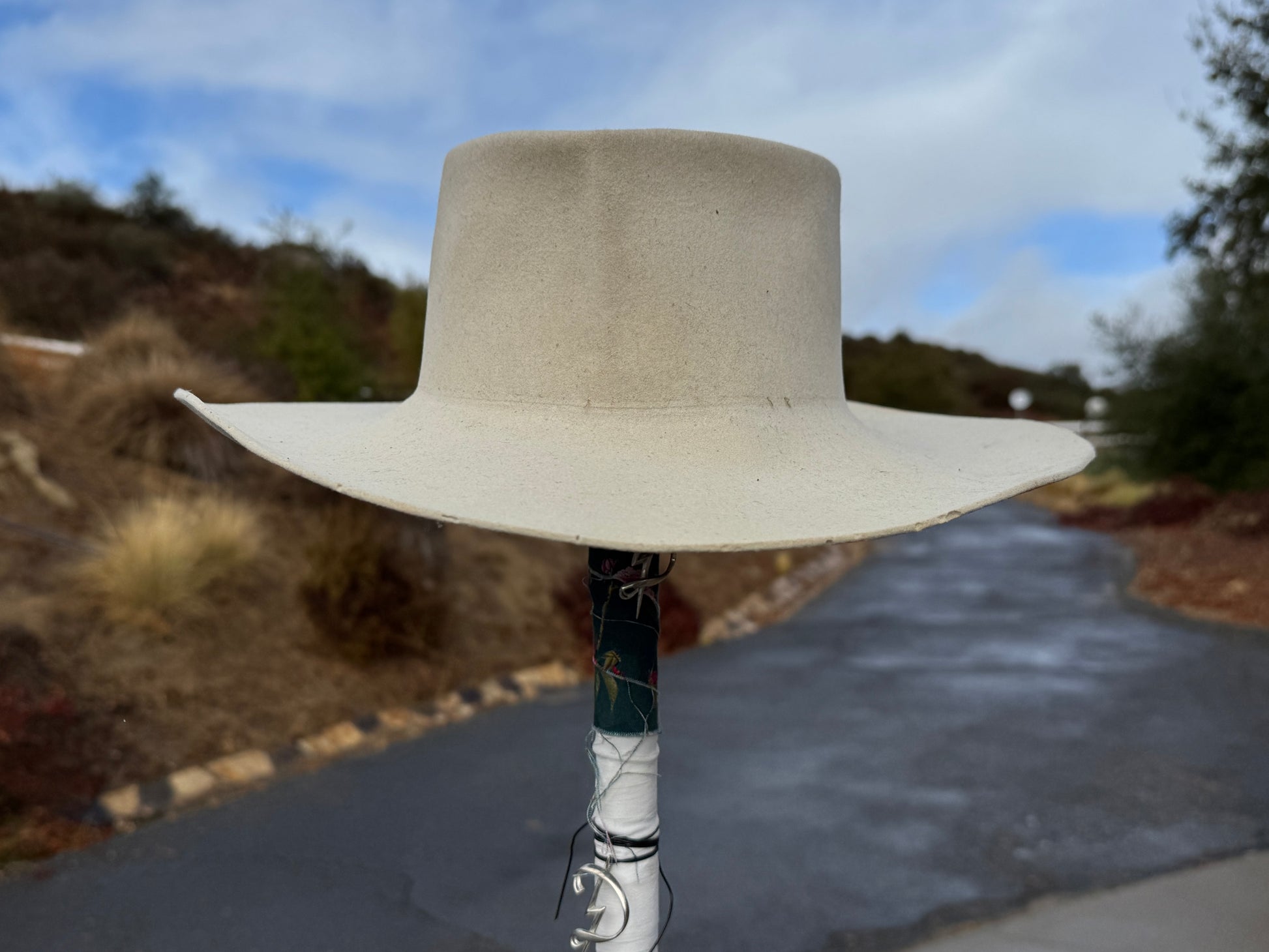 D69 Hats are handmade by artist Ken Goldstein - one hat at a time. The hats are made from either vintage fur, pulled from historic pelts, or repurposed from an existing hat. D69 Hats do not come with hatliners, hat bands, or any accoutrements common in retail Western style hats. D69 Hats are not fancy hats. These a raw with an unfinished quality because once you start wearing yours, it'll finish itself. The D69 logo is burned into the hat, as are details like size and approximated quality of fur. Source material is researched and original production dates estimated.