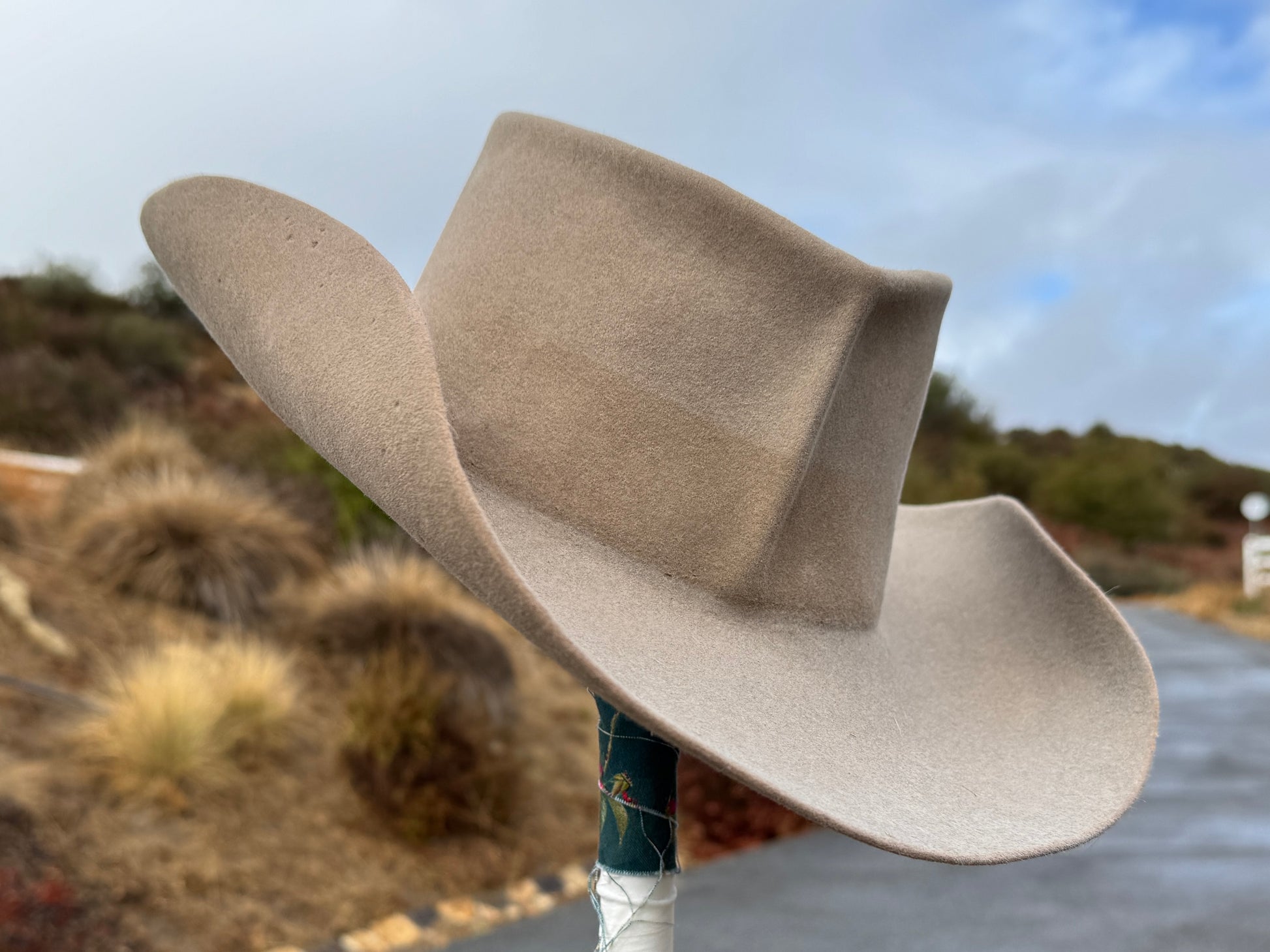 D69 Hats are handmade by artist Ken Goldstein - one hat at a time. The hats are made from either vintage fur, pulled from historic pelts, or repurposed from an existing hat. D69 Hats do not come with hatliners, hat bands, or any accoutrements common in retail Western style hats. D69 Hats are not fancy hats. These a raw with an unfinished quality because once you start wearing yours, it'll finish itself. The D69 logo is burned into the hat, as are details like size and approximated quality of fur. Source material is researched and original production dates estimated.