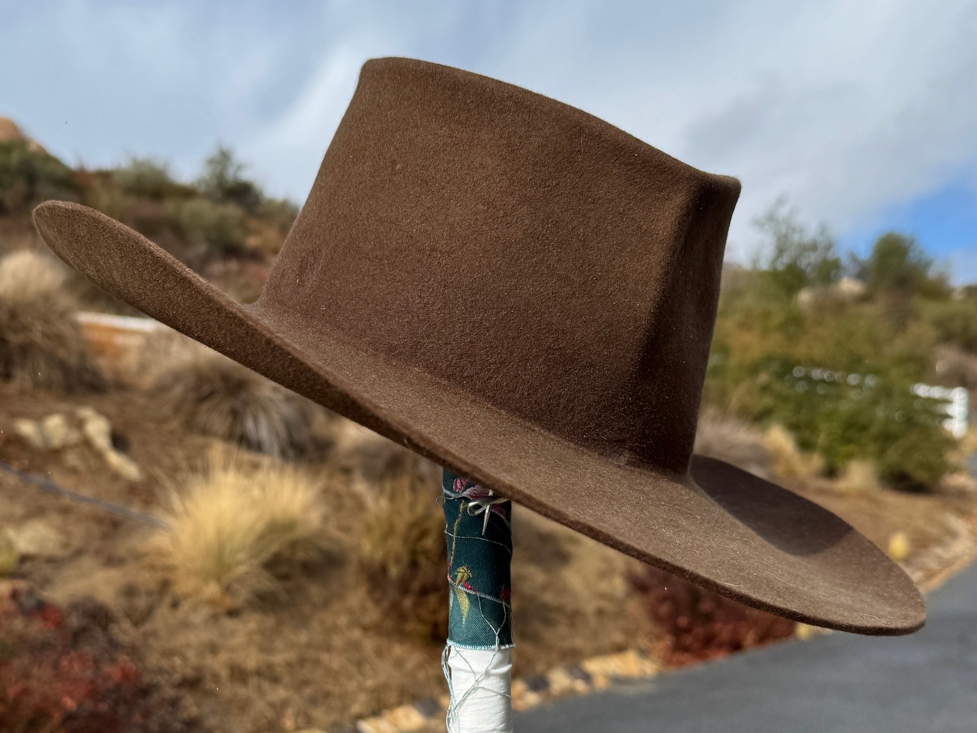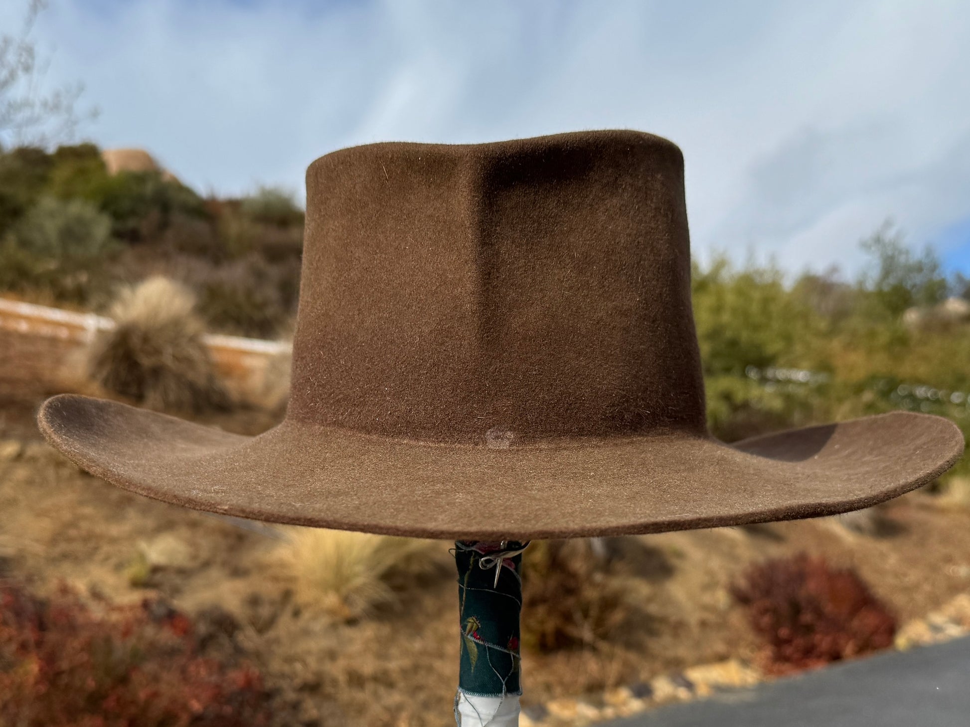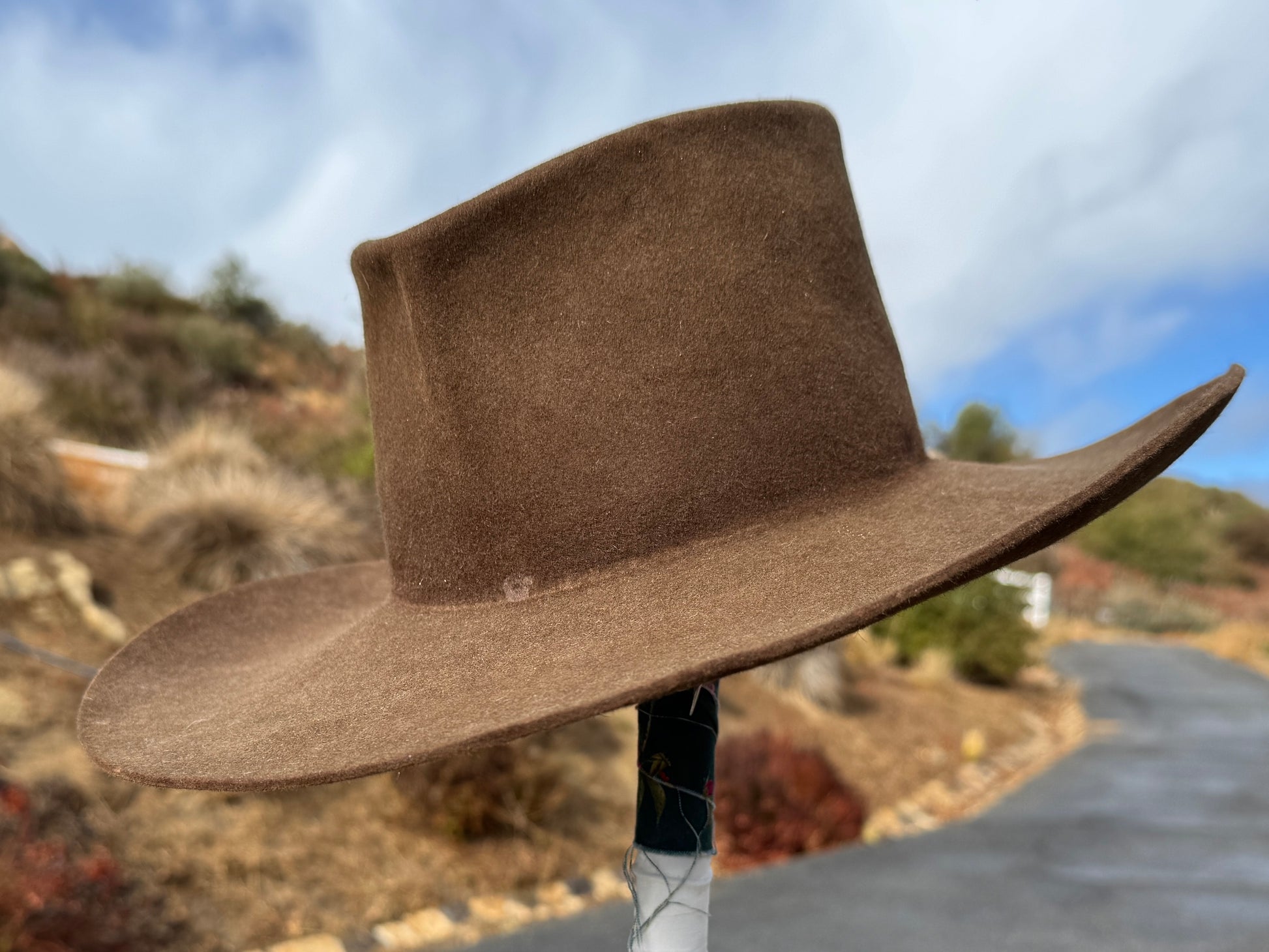 D69 Hats are handmade by artist Ken Goldstein - one hat at a time. The hats are made from either vintage fur, pulled from historic pelts, or repurposed from an existing hat. D69 Hats do not come with hatliners, hat bands, or any accoutrements common in retail Western style hats. D69 Hats are not fancy hats. These a raw with an unfinished quality because once you start wearing yours, it'll finish itself. The D69 logo is burned into the hat, as are details like size and approximated quality of fur. Source material is researched and original production dates estimated.