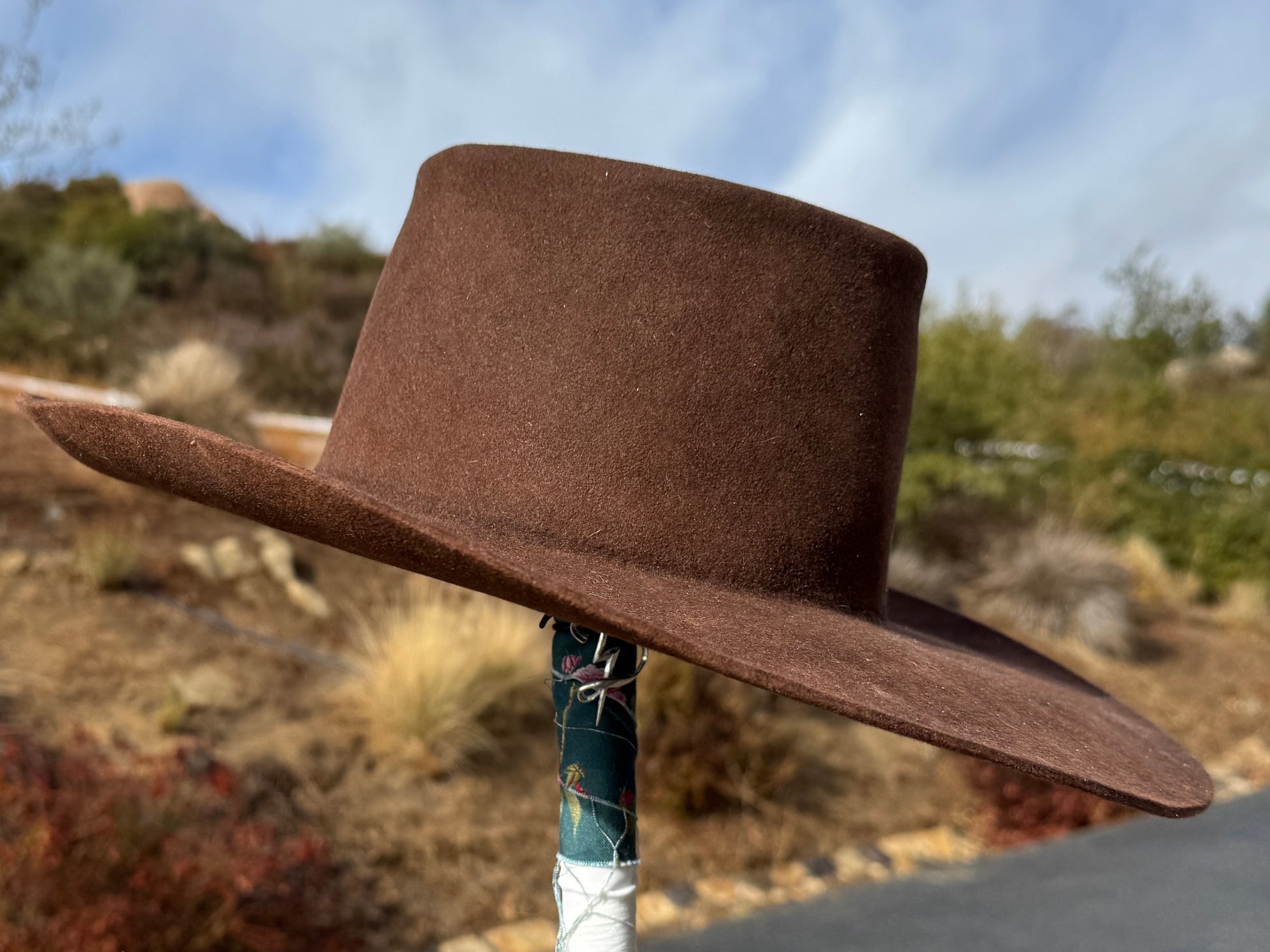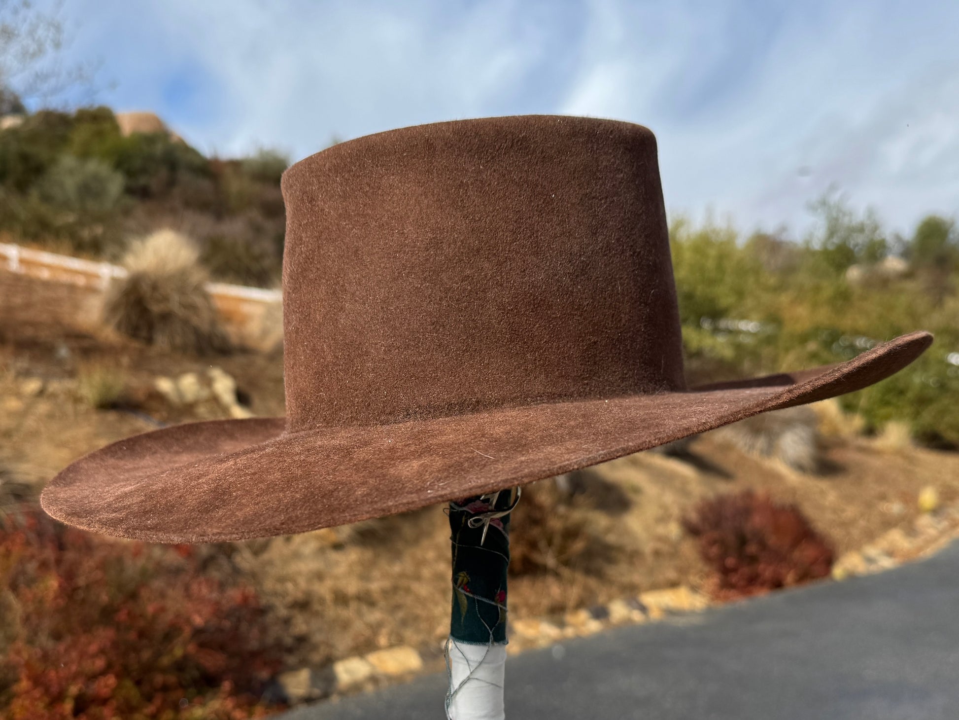D69 Hats are handmade by artist Ken Goldstein - one hat at a time. The hats are made from either vintage fur, pulled from historic pelts, or repurposed from an existing hat. D69 Hats do not come with hatliners, hat bands, or any accoutrements common in retail Western style hats. D69 Hats are not fancy hats. These a raw with an unfinished quality because once you start wearing yours, it'll finish itself. The D69 logo is burned into the hat, as are details like size and approximated quality of fur. Source material is researched and original production dates estimated.