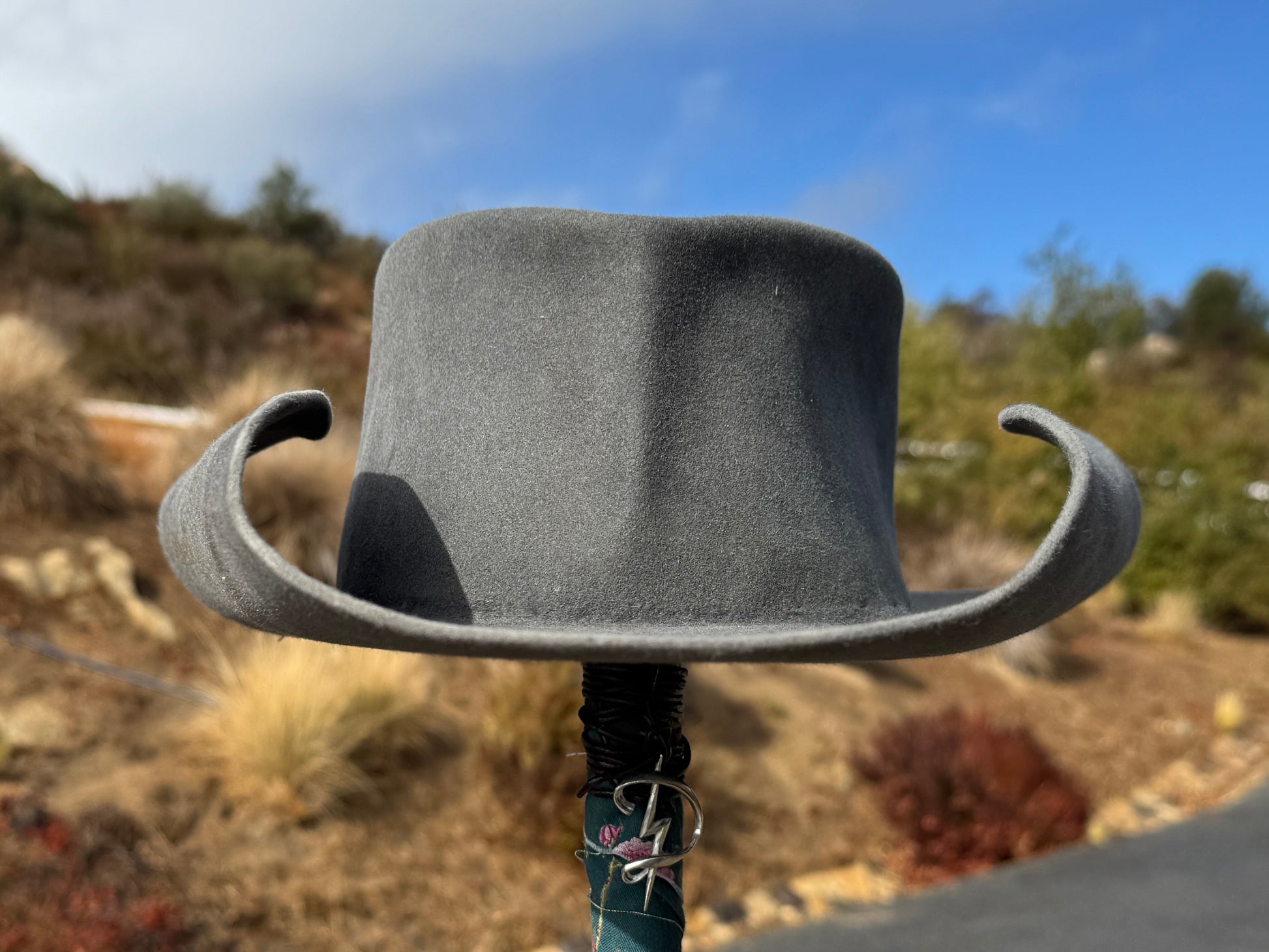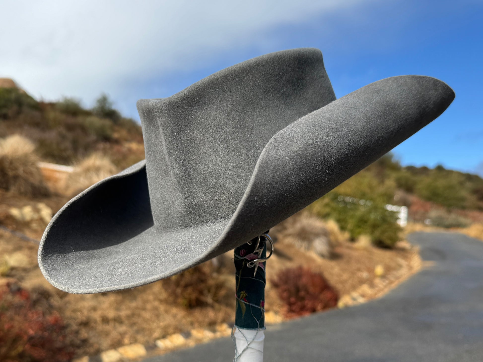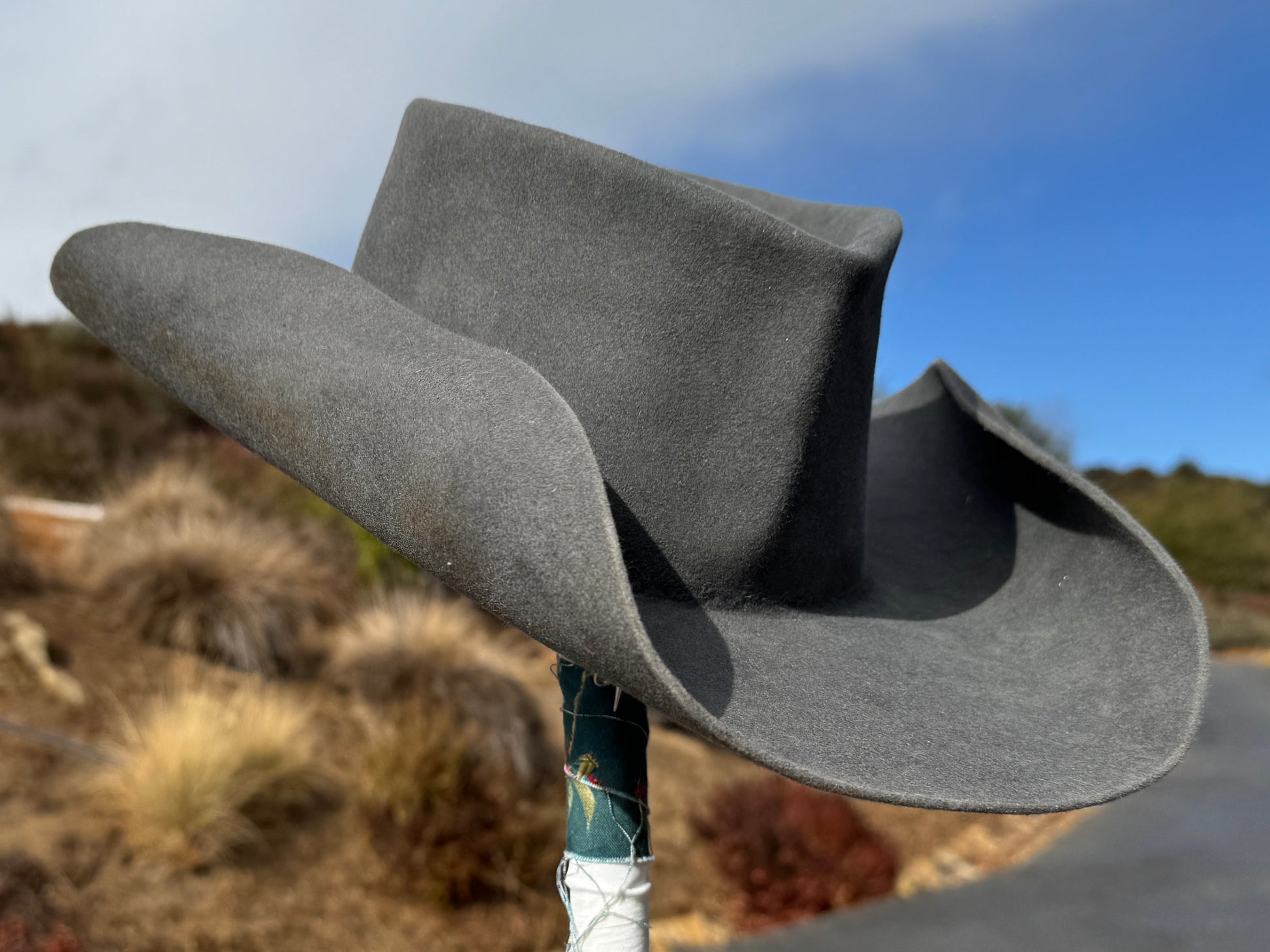 D69 Hats are handmade by artist Ken Goldstein - one hat at a time. The hats are made from either vintage fur, pulled from historic pelts, or repurposed from an existing hat. D69 Hats do not come with hatliners, hat bands, or any accoutrements common in retail Western style hats. D69 Hats are not fancy hats. These a raw with an unfinished quality because once you start wearing yours, it'll finish itself. The D69 logo is burned into the hat, as are details like size and approximated quality of fur. Source material is researched and original production dates estimated.